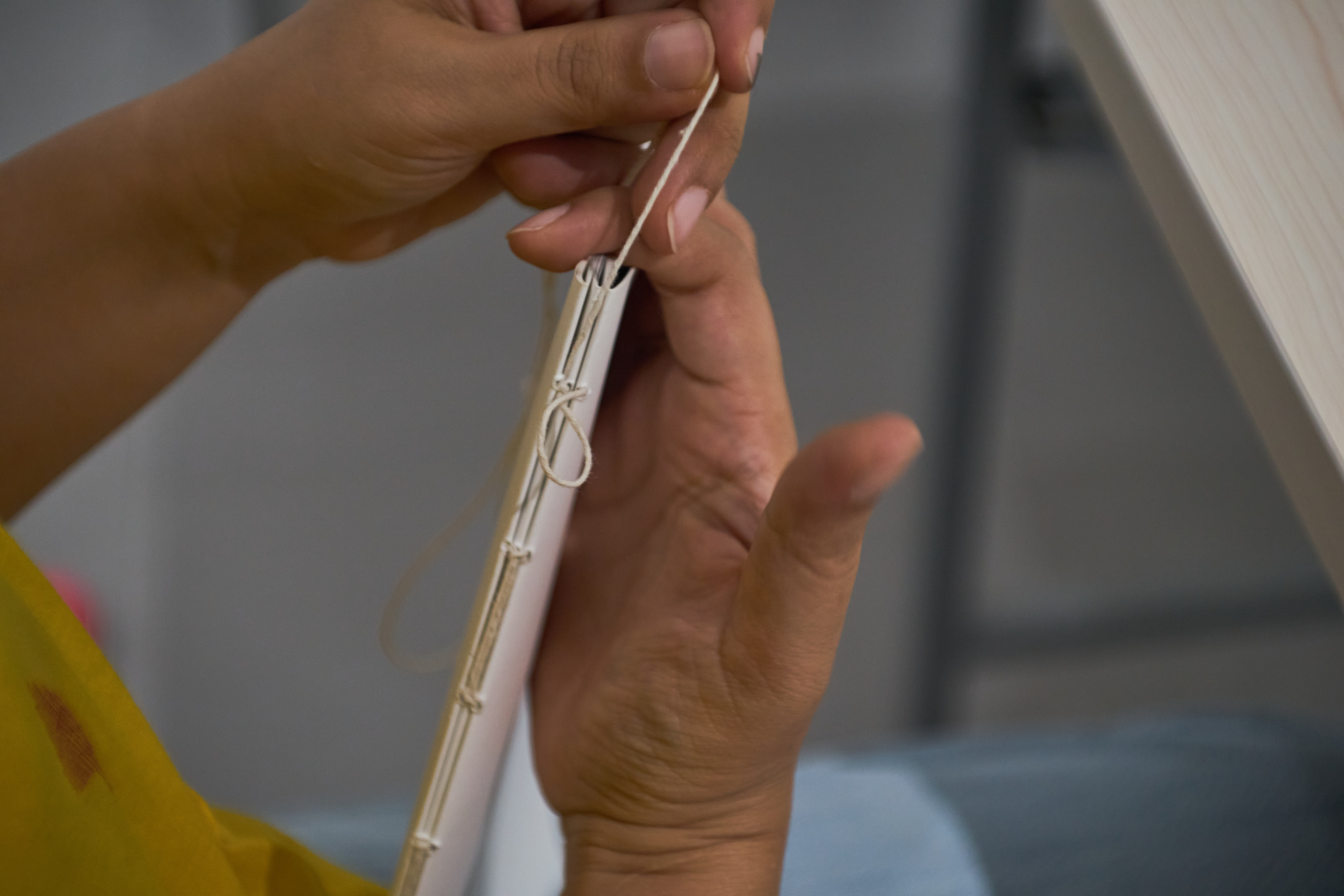 The workshop is open to practitioners who are nearing completion or have a complete body of work intended for publication. Binding tools are provided to each participant along with material to create a5 sized notebooks while learning binding techniques.
