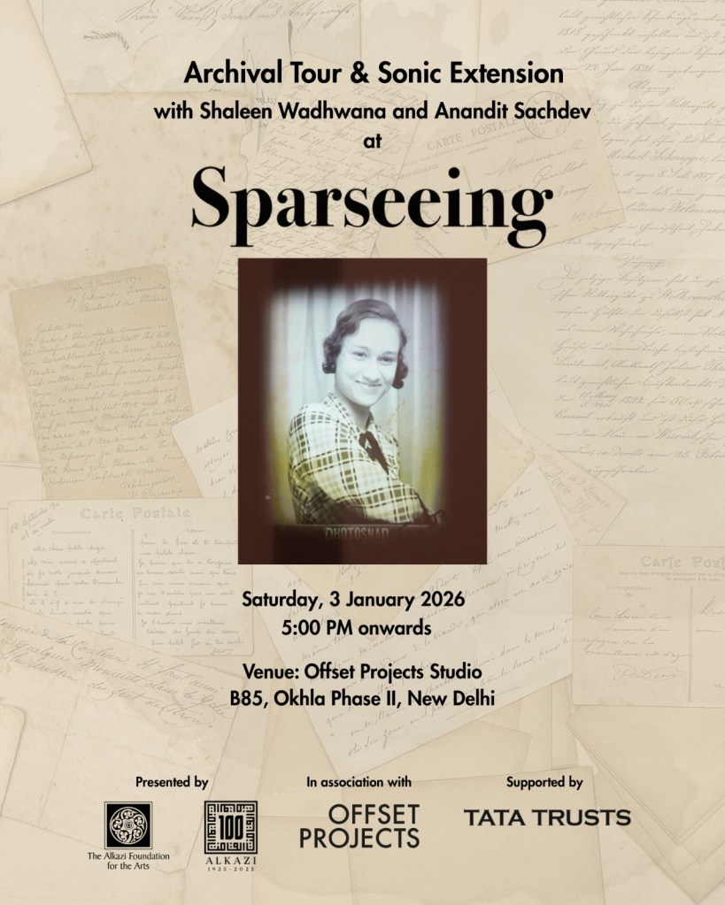 As the month-long exhibition 𝘚𝘱𝘢𝘳𝘴𝘦𝘦𝘪𝘯𝘨 concludes, we invite you to the closing weekend for an Archival Tour by Shaleen Wadhwana, and Sonic Extension by Anandit Sachdev.