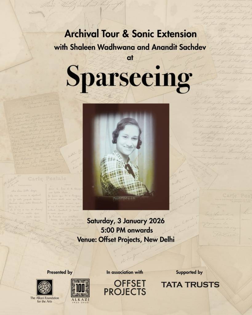 As the month-long exhibition 𝘚𝘱𝘢𝘳𝘴𝘦𝘦𝘪𝘯𝘨 concludes, we invite you to the closing weekend for an Archival Tour by Shaleen Wadhwana, and Sonic Extension by Anandit Sachdev.
